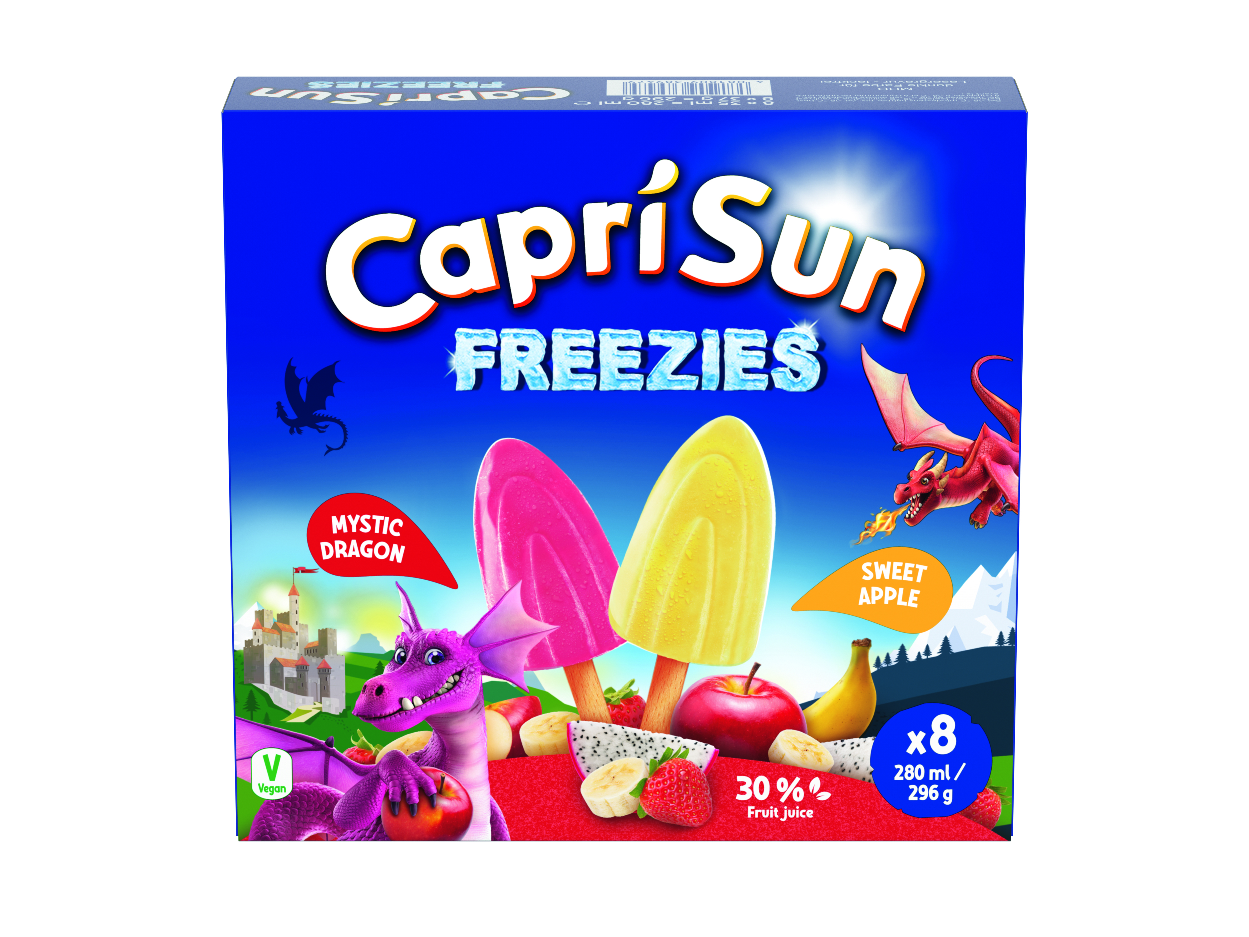 Erfrischend, fruchtig und vegan – das sind die Capri-Sun Freezies! Die Capri-Sun Freezies Sorten bringt die Sonne direkt in die Truhe – mit einem Fruchtanteil von 30%.