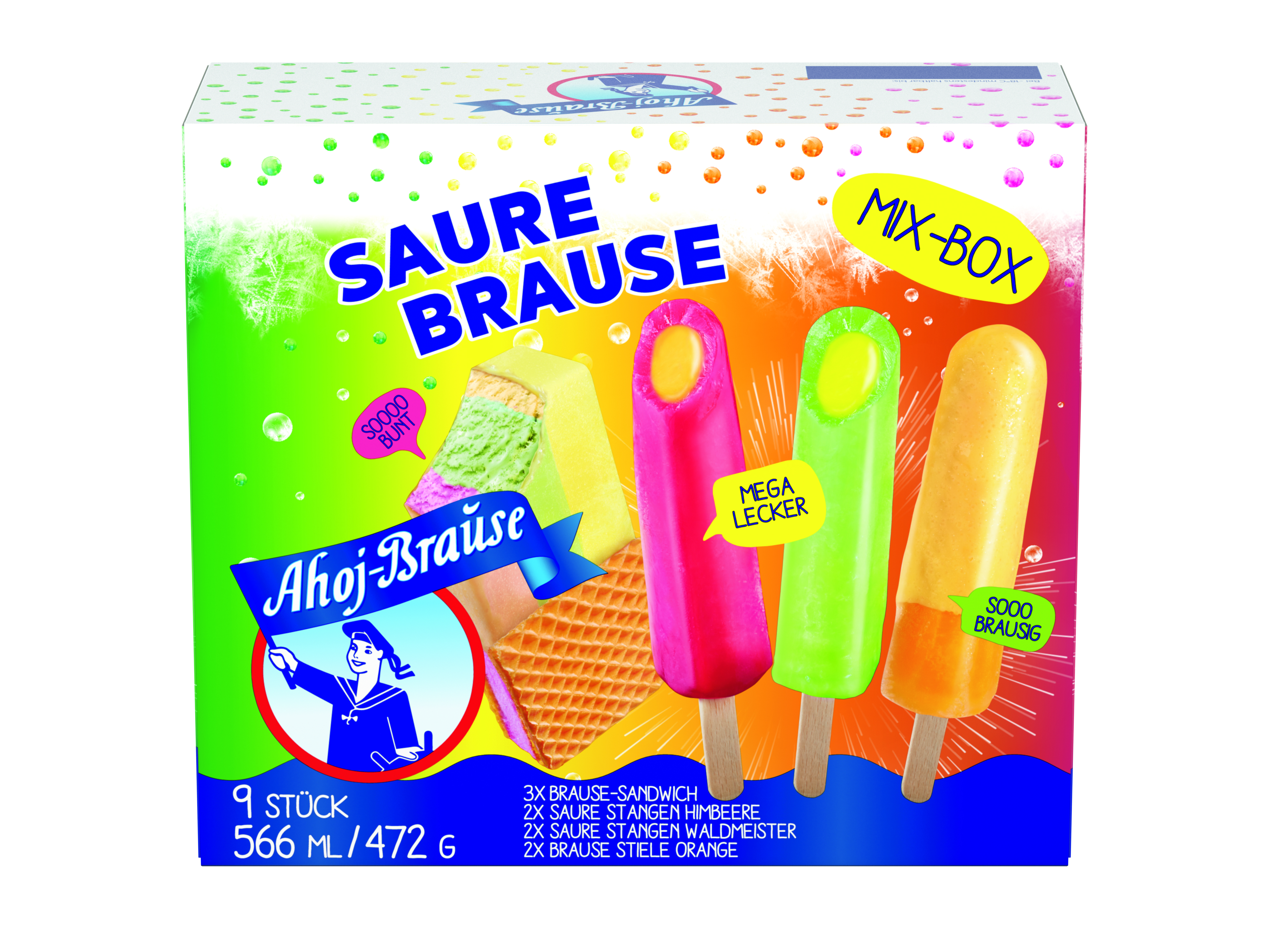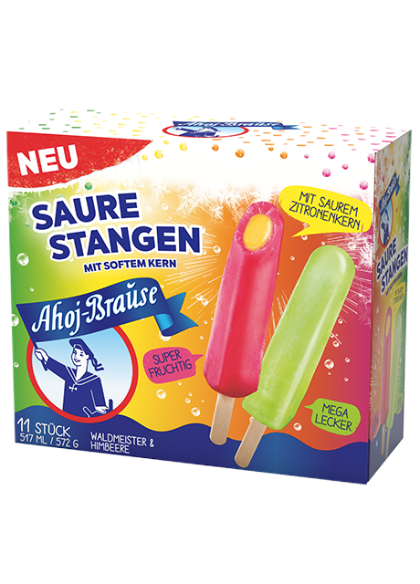 The sparkling cult brand on the ice-cream shelf - as mega-sparkling or sour sherbet fun on a stick, as a sandwich and as an Ahoj-Brause sherbet cup.